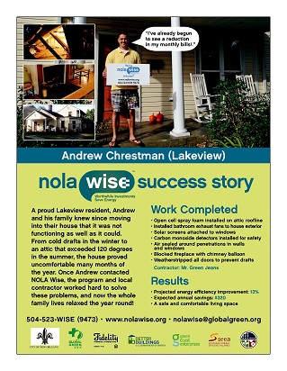 NOLA Wise has had many satisfied clients move through the program to greater energy efficiency. Here are a few of them: